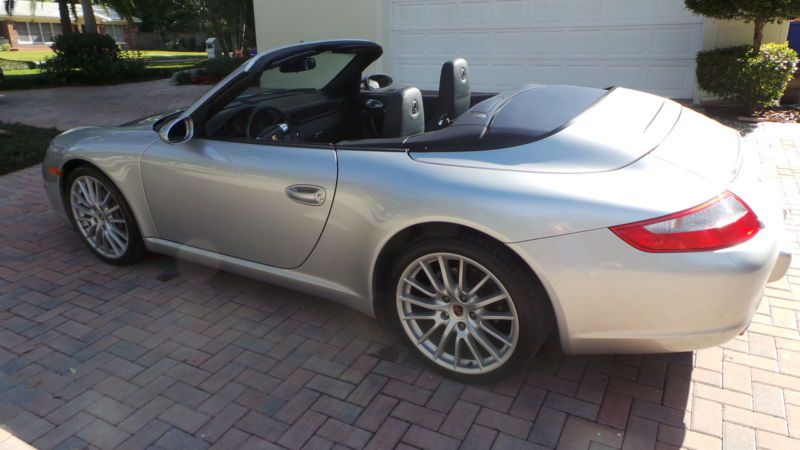 This is a beautiful and incredibly well-maintained Porsche 911 Carrera Cabriolet. Finished in gleaming Arctic Silver Metallic exterior, Navy Blue convertible top and Navy Blue Leather interior, this car looks and drives like a dream. Options include a 6-speed manual transmission that shifts smoothly and quickly, 19-inch sport alloy wheels, upgraded sound system with Porsche emblem, touch screen, iPod hookup, Bluetooth phone connection and amplifier, navigation, Bose, power seats, power windows, power locks, and so much more.