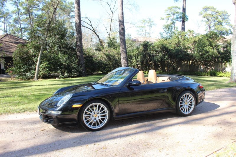 This Carrera 911 Cabriolet is in fantastic condition with the most desired color combination of black + tan. Very low, perfectly maintained, pampered miles. All service records included, vehicle has been in Houston since new. Engine has never been modified or raced. Always garaged and covered. 3M clear chip rock bra on front end and fender wells. Rims in perfect condition. Interior is gorgeous with very minimal wear. Bose sound system, Tiptronic transmission, heated seats, new insulated head liner.