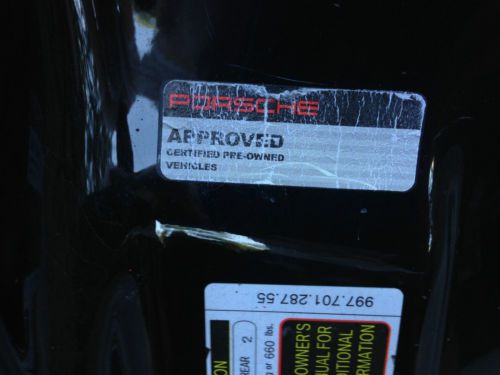 I am pleased to present this exceptional 2007 Porsche 911 Carrera 4S Cabriolet with 6-Speed Manual Transmission. Finished in a Black Exterior with Black Convertible Top, a Black Full Leather Interior, this 911 Carrera 4S Cabriolet is simply stunning! The exterior of this Porsche is in excellent condition in that there are no scratches, dents, or significant chips of any kind. This Porsche has been very well maintained, recently serviced, and with only 61,436 miles, it is in spectacular condition! In addition to its luxurious standard factory equipment, this 911 Carrera 4S Cabriolet boasts an extensive list of options that includes: PCM 3.0 W/NAVIGATION, BOSE SURROUND SOUND SYSTEM, SPORT CHRONO PACKAGE, Full Leather Interior, Self Dimming Mirrors, Heater Power Seats, 3-Spoke Leather Multi Function Steering Wheel, 19 Inch Carrera Classic Black Wheels, Park Assist, 6 Disc CD Changer, Black Floor Mats, Illuminated Stainless Steel Door Entry Guards, Stainless Steel Exhaust Pipes, Porsche Crest in Headrest, Guards Red Seat Belts and much more! The Porsche 911 Carrera 4S Cabriolet is critically acclaimed for its effortless acceleration, awe-inspiring brakes, and the rhythmic sound of a powerful flat six. This particular car features a never get lost Navigation System, a superior Bose Surround Sound System and an enhanced chassis, engine and transmission via the Sports Chrono Package, making this a great buy. If you are looking for a top of the line Porsche 911 for a much more affordable price, take advantage of this opportunity as this beautiful 2007 Porsche 911 Carrera 4S Cabriolet is being offered at an incredible price and WILL BE SOLD SOON! This Porsche 911 is currently protected by the full Porsche bumper to bumper factory warranty because it is a Porsche pre-certified used car and therefore the car currently has been completely inspected and certified by Porsche. OPTIONS: Convenience Features: 1-touch down windows Driver vanity mirror Tilt steering wheel Air conditioning- Climate Control Garage door transmitter: HomeLink Front beverage holders Speed control Illuminated door guards Telescoping steering wheel Automatic temperature control Power windows Passenger door bin Remote keyless entry Passenger vanity mirror Driver door bin 1-touch up windows ENTERTAINMENT FEATURES Diversity antenna MP3 decoder AM/FM radio 1st row LCD monitors: 1 CD player Multi-Functional Steering Wheel SEATS AND TRIM Leather shift knob Max seating capacity: 4 Rear seats: split-bench Leather steering wheel Front seats: bucket Front center armrest Power passenger seat Sport steering wheel Leather upholstery Power driver seat BODY EXTERIOR Spoiler Glass rear window Door mirrors: body-color Convertible roof wind blocker Power door mirrors Bumpers: body-color Convertible roof lining Heated door mirrors Power convertible roof |