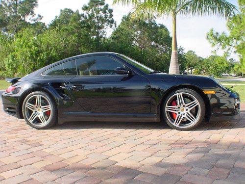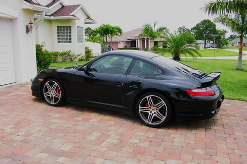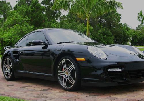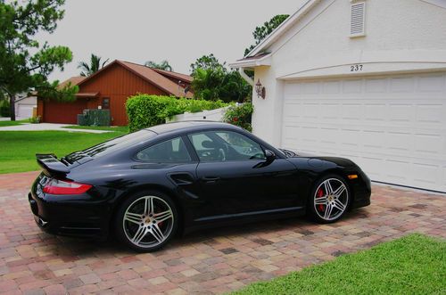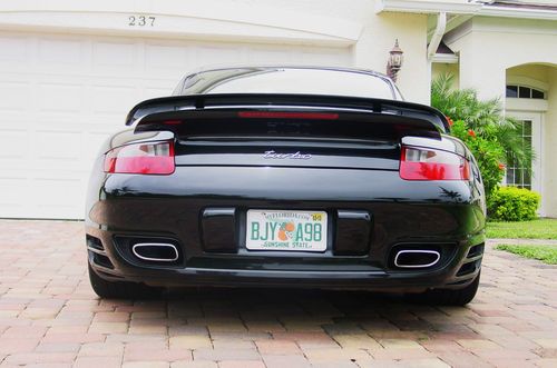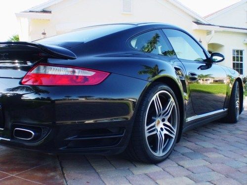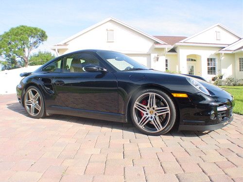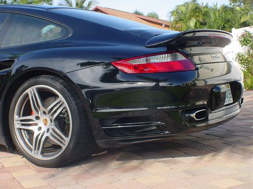 2007 PORSCHE 911 TURBO, 480HP, TIPTRONIC, BLACK W/ OPTIONAL BLK/TAN FULL LEATHER INTERIOR, ALCANTARA HEADLINER, OPTIONAL SPORT ADAPTIVE SEATS W/ BLACK SEAT BACKS MATCHING CAR'S BLACK EXTERIOR. PREVIOUSLY PORSCHE CERTIFIED PRE-OWNED /CPO VEHICLE FOR 100,000 MILES OR UNTIL 10/26/2012- IT JUST TIMED OUT AT 53000 MILES. CURRENTLY 54,600 MILES. ALSO, IN 2012 WHILE STILL UNDER PORSCHE CPO WARRANTY, IT UNDERWENT A PRE-PURCHASE INSPECTION WHERE ALL SCHEDULED SERVICE WAS UPDATED W/ BRAKE FLUSH & SPARK PLUGS! NOTE: THE DME REPORT HAD NO (AS IN ZERO) ISSUES AS IT IS AN AUTOMATIC/TIPTRONIC (BE SURE TO ASK ABOUT "DME" WHEN YOU ARE PORSCHE MANUAL TYRANNY SHOPPING). ALL PHOTOS ARE FROM JULY 2013 - PRIOR TO THE SEPT. 2013 DETAILING! NEARLY FLAWLESS AS A DRIVEN '07 COULD BE. ABSOLUTELY NO ISSUES, WORRIES OR CONCERNS! THIS EXCEPTIONAL 2007 911 TURBO PERFORMS & LOOKS FANTASTIC INSIDE/ OUT, ORIGINAL PAINT IS MIRROR-LIKE- JUST FULLY PROFESSIONALLY DETAILED ON 09/07/13!! INCLUDING WHEELS, MOTOR, & FULL 3-STEP PAINT CORRECTION, THEN A POLISHING AND WAXING WITH PROTECTIVE PAINT SEALANT. IT LOOKS BETTER THAN THE 911 FACTORY DELIVERED PAINT DOES! LEATHER IS OUTSTANDING & HAS NEW CAR SMELL-NEVER A SMOKER INSIDE. ALWAYS PROFESSIONALLY MAINTAINED/DETAILED. NO WRECKS/DAMAGE, SALVAGE, FLOOD, THEFT, ETC. AND NO PAINT/BODY WORK NOR ANY TOUCH UP PAINT WORK DONE. THE ENGINE & ALL COMPONENTS ARE CONCURS -PERFECT. ALWAYS GARAGED/SERVICED BY PORSCHE UNDER ORIGINAL & PORSCHE CPO 2 YEAR EXTENSION WARRANTIES. OPTIONS: PASM,SPORT CHRONO PKG PLUS, ACTIVE SUSPENSION, 19" TURBO WHEELS. PADDLE SHIFTS ON STEERING WHEEL IS OPTIONAL THICKER LEATHER WRAPPED, FLOOR MATS W/ PORSCHE LOGO. NAV, ON BOARD COMPUTER, BOSE SPEAKERS, IN DASH+ CD PLAYERS, MP3 CAPABLE, XM SATELLITE RADIO ,SUNROOF, BI-XENON SELF CLEANING HEADLIGHTS, LEATHER BOUND MANUALS, UNUSED TOOL KIT. I EVEN HAVE THE ORIGINAL MSRP $133,000 STICKER.