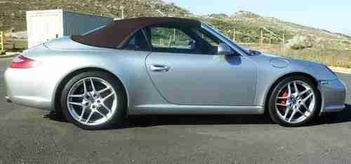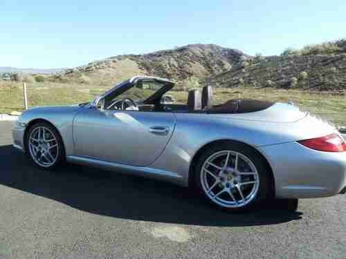 Up for sale is our 2009 Porsche Carrera S Cabriolet that we purchased as a certified pre owned vehicle in December 2011 from a local Porsche dealership here is Southern California. The car comes with an extended warranty good until Dec 2015 or 100,000 miles. The car is in great condition and recently was serviced at our local Porsche dealer. A new set of tires installed at the tune of $3,000. Everything is in awesome mechanical condition with no known problems or issues. The car has always been garaged or covered so the exterior paint is in great condition and is silky smooth to the touch. The interior is beautiful with its cocoa brown leather with white stitching. The color combo for this car is very classy with the Arctic sliver and cocoa top. This car is heavily optioned and originally was over $118,000.00. Please see photos for option sheet.