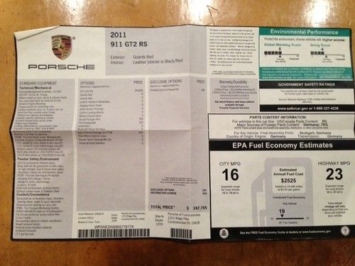 Up for auction(BUY IT NOW: $100,000) is a Red 2011 Porsche 911 GT2 RS with 570 Miles. Only 500 of these collector series cars were made, this is number 474/500.