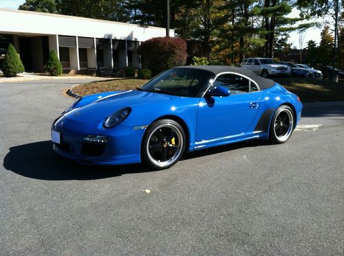 THIS IS A VERY LIMITED EDITION 2011 PORSCHE 911 SPEEDSTER CONVERTIBLE #58 OF 356. A TRULY UNIQUE AND SPECIAL CAR. BUILT AS A TRIBUTE TO IT EARLIER VERSIONS THIS CAR HAS ALL THAT COULD BE DESIRED IN A SPORTS CAR. IT HAS THE SPORTY DRIVING EXPERIENCE MATCHED BY THE COMFORT AND LUXURY YOU EXPECT WITH THE PORSCHE NAME.ONLY 356 OF THESE LIMITED EDITION CARS WERE PRODUCED AND ONLY 100 OF THOSE WERE MEANT FOR SALE IN THE U.S. THE SPEEDSTER COMES WITH ALL THE BELLS AND WHISTLES .A VERY RARE AND HARD TO FIND MODEL IN PURE BLUE WITH PREMIUM WHEELS .DONT MISS OUT ON A CHANCE TO OWN THIS LIMITED EDITION PORSCHE SPEEDSTER CONVERTIBLE,WELL MAINTAINED AND GARAGED. SHIPPING IS THE RESPONSIBILITY OF THE BUYER