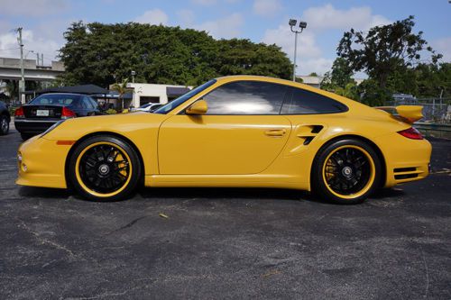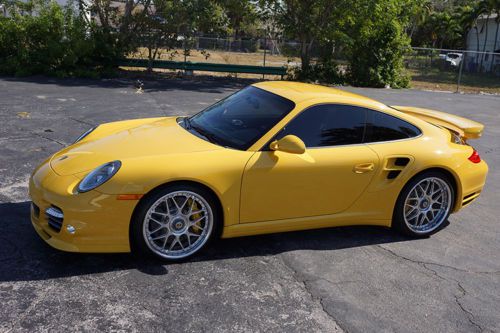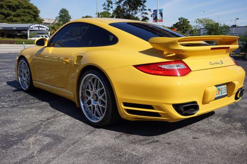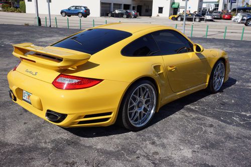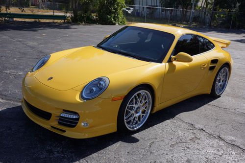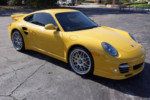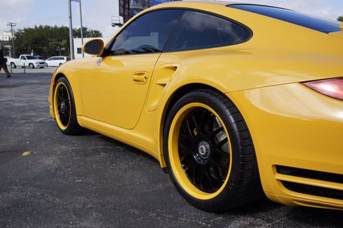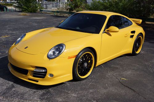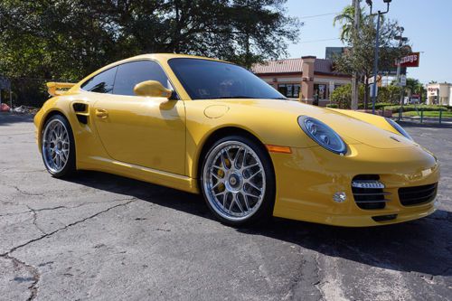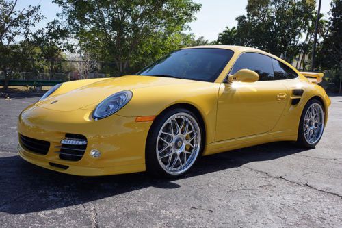 2011 Porsche 911 Turbo S, PDK Automatic Transmission, 0-60 in 2.9 seconds and 10.9 sec. in the 1/4 mile, Speed Yellow with Black Full Leather Interior, Deviated Yellow stitching throughout Interior, Navigation, Sunroof, Heated Front Seats, Carbon Package, Sport Chrono in yellow, Body Aero kit , Porsche Crest on Headrests. Two sets of rims and tires. 1) 19” painted Champion wheels with Michelin Tires 2) 20” polished HRE wheels with Continental tires. Extra $16k invested just in rims and tires. Turbo S emblem and exhaust tips blacked out. Tinted windows. Car recently serviced by certified Porsche mechanic and had a clean bill of health. Original MSRP was $174,020; This 911 Turbo S is in excellent condition and comes highly optioned. Still under factory warranty. Love the car but selling for an investment opportunity. Only has 11k miles. "Buy It Now" $119,900. Best priced Turbo S out there not even counting the extra wheels and tires. Call (904)813-1716 and leave a message if