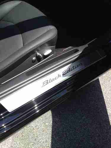 Exclusive to the Black Edition, black lettering on the stainless steel door entry guards provides the first hint of the high-quality interior design and continues the exterior color scheme. Also included is a sport design steering wheel while the instrument cluster remains black. On the glove compartment lid, a badge testifies to the 911 Black Edition's limited production run while the decorative molding on the dashboard, gear lever or selector and air vents provide a contrast with their aluminum look paint. The rear center console is painted in the exterior color.