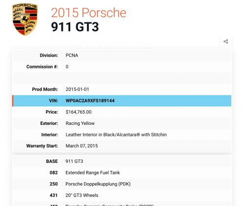 VIN (Vehicle Identification Number): WP0AC2A9XFS189144