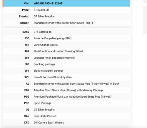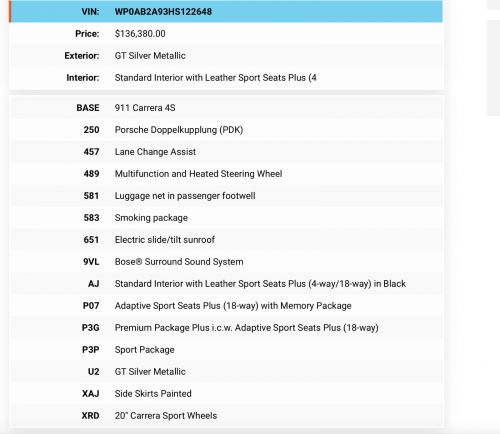 2022 porsche 911 carrera 4s sport package - premium package(US $143,991.00)