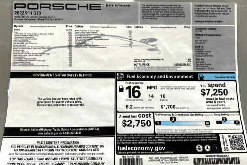 2022 porsche 911 gt3 w/touring package(US $252,995.00)