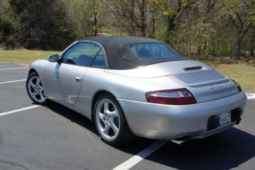 Well maintained, all-wheel drive, 6-speed, silver Porsche 996 convertible. This car is so much fun to drive. It is in great shape inside and out with very, very light wear. All maintenance done and garaged at home and work. Drives and handles like new. The 6 cylinder boxer engine sounds like an orchestra when accelerating.