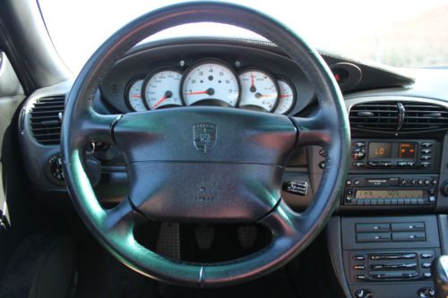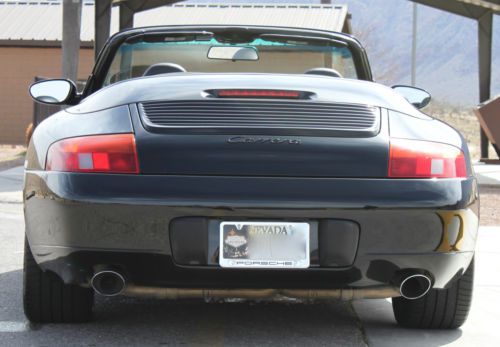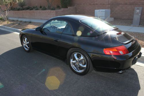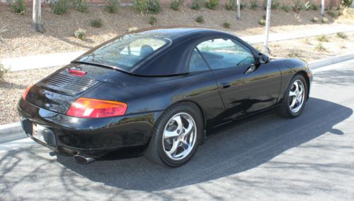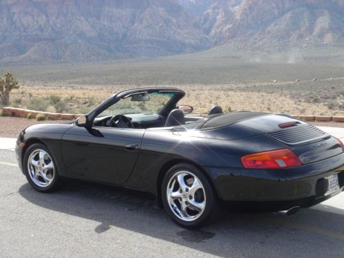 Convertible beauty! This 1999 fully loaded Black Porsche 911 Carrera Cabriolet is in excellent overall condition with Hardtop and Wind Screen. Low Miles, Garage kept with Porsche Car Cover, Pristine Interior, Non Smoker, Custom Chrome Porsche Wheels, Six Disk CD Player with upgraded stereo, Black leather heated power seats like new, A/C ice cold, Very Clean interior with upgraded custom mats, Never been raced, No accidents, No snow, Title in hand, 2 Keys, Well Maintained and New Oil Change. |