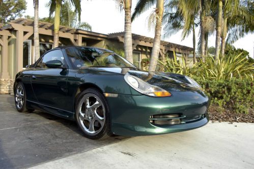 This car is my pride and joy but family emergency forces sale. These cars have a design flaw in the transmission and this one was replaced at 80k in 2009. I have only driven the car 10k since then. It is regularly maintained and the paint is in great condition. The drivers seat does show wear but the rest of the interior is in great condition. As you can see from the pictures, this is a nice car. The top has also been replaced and I had the plastic window replaced with a glass one with defrost. I have not seen another car this color with the TechArt body kit and the Cargraphic exhaust system sounds amazing. The interior stitching also matches the green exterior. |