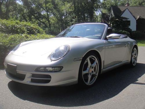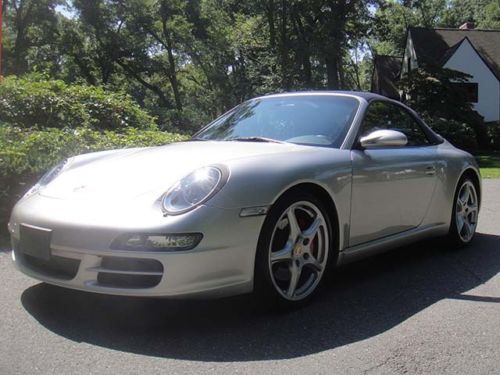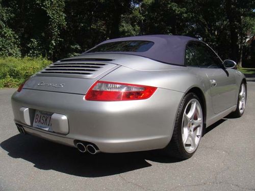 This is a beautiful and unique 2006 Porsche 911S Cabriolet with Sport Package, Desirable and Rare Color Combination, Metallic Silver with Navy Blue Leather Interior and a Navy Blue Top. It has 30,000 Miles. Options include Xenon Lights, 19” S Wheels with Colored Center Caps and Red Brake Calipers, 6 Speed Manual Transmission, Navigation, Sport Chrono, Sport Button, Sport Suspension Button, PSM, Power Seat Package, Heated Seats, Bose High End Sound Package with CD Player. The Exterior and Interior are in great condition. Mechanically the car is perfect. It was professionally detailed once a month and always garaged. It has a clean carfax. There is no known paint work. Everything is in proper working order. If you would like more photos and the carfax report let me know and I can email them over. Please contact me with any questions, aaronxyz@aol.com or 413-530-2763
