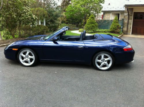 Superior 2003 Porsche 911 996 Carrera convertible in great condition. Lapis Blue Metallic exterior, with Metropol Blue Leather interior and convertible top. Very low mileage at 29.9K. Original dealer price = $90,080.