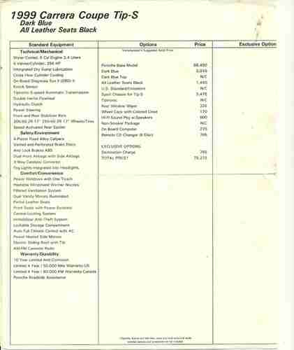 1999 Porsche 911 Tiptronic S Sport package. California rust free clean car. Sold new at Carlson Porsche. Brembo brakes all around, new overflow bottle, Dark blue with black sport seats and black interior. Damage to roof and Drivers quarter panel from building colapse. The car runs and lot drives. AC blows cold and everything seems to work just fine. Great project for open track car conversion, or repair for daily driver. Call me with any questions. 615 699 46O6.