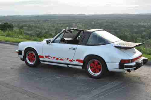 Offered for sale is a nice example of a 1988 Porsche 911 Targa. The car has a white exterior with a black interior. This is a highly option car from the factory including: 018-Sport Steering Wheel with Elevated Hub, 158- Reno Radio, 348- Wheels Painted Body Color, 395- Wheels 15x 6' and 7, 454- Cruise Control, 473- Front and Rear Spoilers, 474- Sport Shocks. The car runs, stops, shifts and corners as it should. The paint still shows very well with some fading on the hood and rock chips here and there typical with a car of this age. The targa top is in very good condition with not rips or tears. The wheels are original 16 X 6's and 7's painted red with polished lips. I have a set of factory black wheels if you prefer stock look. The Red Carrera stripe can be removed with no damage to the paint for a completely stock look. All of the accessories on the car work including the A/C and cruise. The car comes with the original manuals, and tool kit. Please note this car is not a show car. Its a driver and has typical ware and tear of a vehicle with 153xxx miles. Sold as is no warranty. Please feel free call or come and see the car in person. 423-593-9313 . Here is a list of parts and maintenance that were competed during the last 500 miles:
