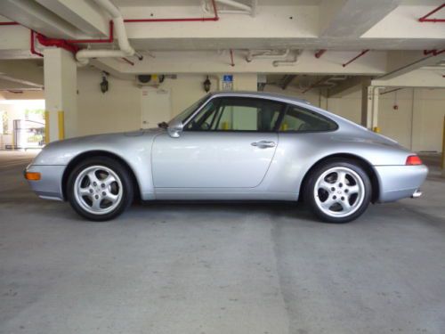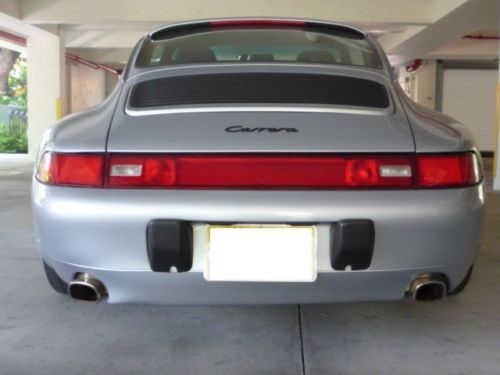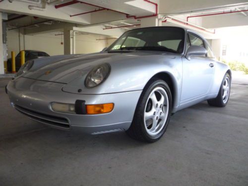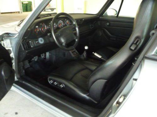 1996 Porsche 993 Factory Delete Sunroof Coupe; specially ordered from factory. Offered in optional Polar Silver Metallic with Black leather. High MSRP ($72,000+ sticker price). Very well preserved example; no modifications done to vehicle. Near concours level condition exterior and interior. High level of service including top end rebuild, complete clutch/flywheel replacement and "while you are in there" additional parts. No oil leaks, no CEL issues and all electrical and mechanical features function correctly. Sunroof delete option puts this Porsche in a class by itself; 1 of 5 narrow body examples made for US market. The sunroof delete option gives the occupants 3" of extra headroom, signifcant weight savings at the highest point of the car and the elimination of maintenance, repair and leakage associated with the sunroof panel/cables.