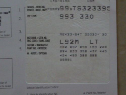 New Black Lloyd mats with red Porsche lettering. Michelin Pilot Sport tires. Two owner car with no accidents and clean Carfax. All books, manuals, window sticker and documentation from new. This is the rarest and most collectible NB 993 on the market. All air cooled Porsches are appreciating at a rapid rate. The special and limited edition models such as this exampe are and will increase even faster. Additional pictures and information available upon request as well as a pre purchase inspection, if requested. |