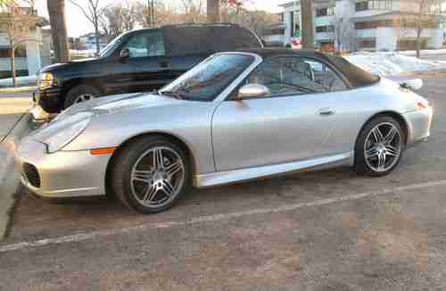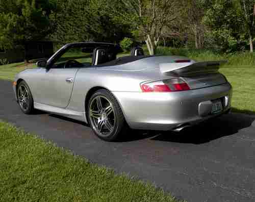 You are bidding on a 2002 Porsche 996 Convertible. The car is in excellent shape, low miles. It has been stored during the winters in a heated garage and babied accordingly. I switched out the original tail with a bigger one. If you don't like it, I can have the original put back on. Turbo rocker panels were also added. The original seats have been replaced with Porsche Cayman seats. Everything works on the car. It is a smooth ride. I have a Twin Turbo, plus 2 others and have had other Porsches, this car is smooth riding vehicle. If you look close, you can always find little things but this car is nice. I am a non-smoker. I am not the original owner, it was a Florida car previously. I have had the car maybe 5 years. The only reason I am getting rid of it is, I don't need so many cars. I have a mechanic that maintains them, if you have question regarding the vehicle I could give you his name.