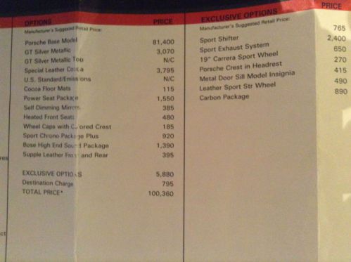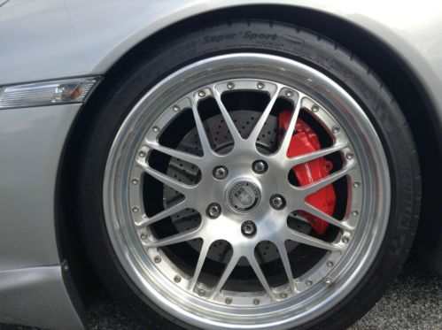 This California vehicle has low miles and looks brand new. It has been a weekend companion and garage queen that is always covered. Purchased with only 697 miles on it after it was featured and reviewed on Autospies.com. This review is still on their website. Original MSRP was $100,360 and added dealer installed navigation and CD changer for $3,865. Went crazy and installed the most attractive after market features that were installed by the most reputable after market companies without voiding the manufacturer warranty or compromising the mechanical integrity of the vehicle. These additions include a Techart Body Kit ($7,197), HRE C20 Wheels ($5,575), Bilstein PSS9 Suspension ($3,433), Tubi Sport Exhaust ($2,922), EVO Flash Tuning and V-Flow Intake ($1,965), EVO Headers ($1,865), Full Body Clear Coat ($1,320), RSS Performance Plenum ($1,182), H&R Sway Bars ($830), Techart Pedal Kit ($703), EVO Dual Exhaust Tips ($495), Tinted Windows ($289) and Side Marker Lamps ($60). Ran out of money and stopped with a stunning car with over 400 HP. Most of the work was done by Sharkwerks in Fremont, CA and the car is also featured on their website. The Manufacturer's options are listed on the original Dealer Invoice which can be seen with the pictures. I have the original invoices for all the work noted above and all the service records. Also includes is a custom car cover, a battery charger, the owner's manual and the dealer marketing brochure. The car rides on Michelin Pilot Super Sport tires with ample tire tread remaining. The car just completed a major service 300 miles ago by Porsche of Steven's Creek in Santa Clara, Ca. In summary, this is as good as a 997 C2S gets in both looks and performance and it attracts attention wherever it goes.