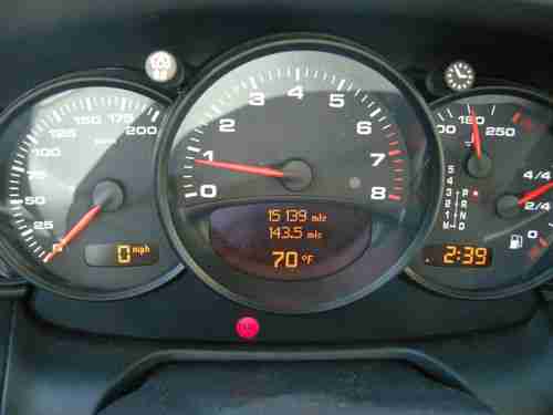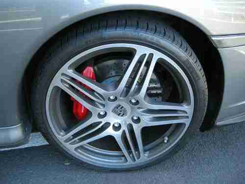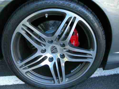 OPTIONS INCLUDE NAVIGATION, DIGITAL SOUND, CARBON WHEEL AND INTERIOR TRIM. THE NATURAL GRAY LEATHER LOOKS LIKE A SOFT FLAT BLACK IN MOST LIGHT. THE ACCOMPANYING PHOTOS WERE TAKEN ON A BRIGHT SUNNY DAY TO SHOW THE PERFECT BODY AND WHEELS. THERE IS ONLY ONE SMALL TUMBLE WEED SCRATCH ON THE LEFT FRONT THAT DOES NOT SHOW UP IN PHOTOS BUT CAN BE BUFFED OUT. THE SEATS HAVE THE PORSCHE CREST MOLDED INTO THEM AND THE WHEEL CAPS ALSO HAVE THE PORSCHE CREST.