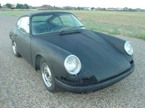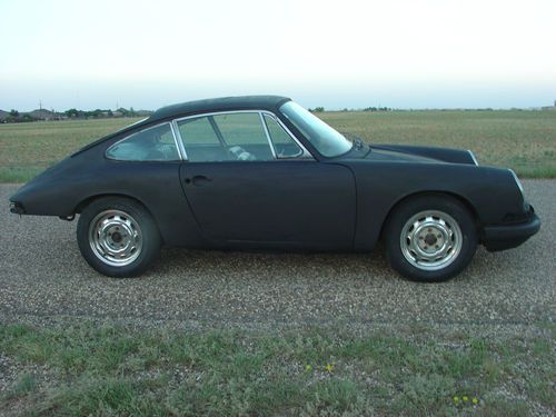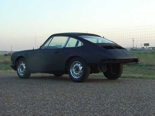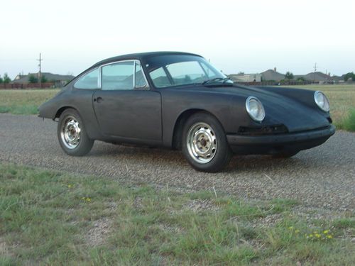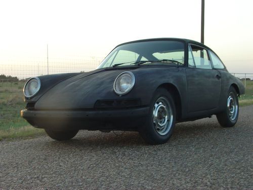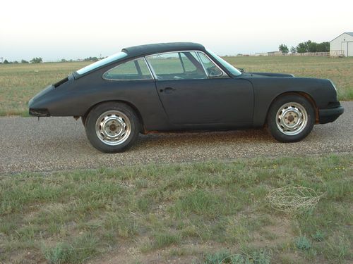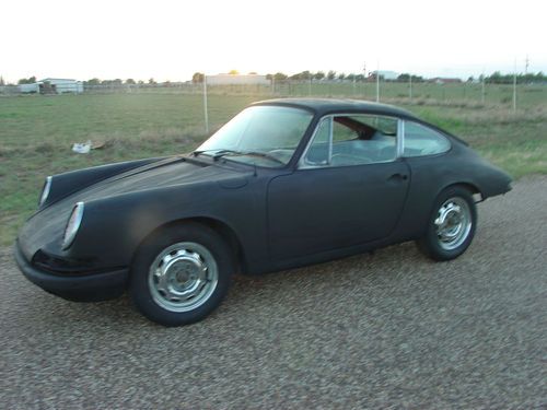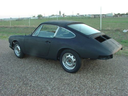 This auction is for one 1967 PORSCHE 912 Sunroof project car. Early SWB car would be perfect candidate for restoration, but would make a fine driver or club racer as well. West Texas car has minimal rust given its vintage, the floor pans are original and have no holes though there is very light perforation under the battery box... pretty standard stuff. Body is straight and currently in black primer. Four correct date Lemerz wheels with four new Kuhmo 165's. All original glass is intact and nice with original seats and remnants of original upholstery. No engine, gauges or steering wheel but overall mostly intact and original... please see pics.