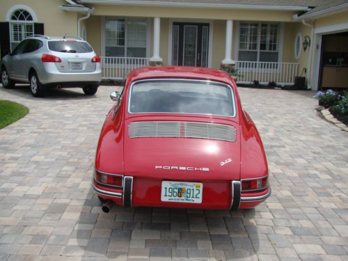 Nice,clean restored 1966 Porsche 912. Top end of engine rebuilt less than 1,000 miles ago (I have paperwork). Has fuchs, new weber carbs, new brake lines, new master cylinder, rebuilt calipers, new gas tank, new fuel sender, new electrical harness, new matching German Perlon carpet inside/trunk, new battery, new windshield washer tank and pump (working order), New front seat covers, new headrests, new paint job in polo red with 5 clear coats, new front and rear windshield gaskets, new headliner, steering wheel from '66 Porsche, bat wing horn button (horn works), working European blue dot Blaupunkt radio with new door speakers, floor panels solid. partial leather tool kit with original blaupunkt jack, owner's manual and 181 page Porsche 912 handbook. This was the same model/year of Porsche I was driving 36 years ago when my wife and I met, and when I saw it for sale, I grabbed it. The car was stored from 2003 until 2012 when I purchased it. I have all documentation for work done since I owned it (some of which is listed above). I've done my part bringing it back to life, now it's time for someone else to enjoy this great car. buyers responsible for picking up car in St Augustine, fl or shipping . purchase via bank to bank wire transfer or cashiers check