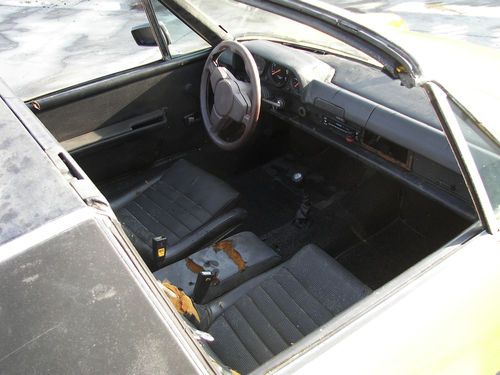 Up for auction is a 1976 Porsche 914 1.8L that has been converted to a 4.3L GM V/6 with approximately 175Hp and 250ft-lbs of torque. The car DOES RUN but DOES NOT DRIVE so please assume that this will require a full restoration. The prior owner informed me that the 4.3L was rebuilt prior to installation and that an Edelbrock Performer manifold and Edelbrock carb was installed with a ceramic coated Supertrap header and exhaust system, electric water pump, alternator, and Accel HEI ignition system. He was not sure of the specs on the internals so unfortunately I don't have any of the cam, piston, etc information. The engine has been installed with the trans adapter kit, motor mounts, and radiator but the accelerator cable, fuel lines, cooling fan, clutch cable, and shifter linkage still need to be hooked up. Also the car does come with a targa top and the front rotors and rear hubs have been drilled to accept 5 lug wheels although 4 lug Riverias are installed now.
