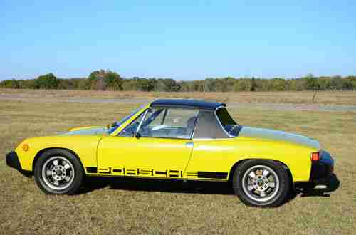1975 Porsche 914, 2.0 is all original, including the yellow berber paint. This car has a documented 69,000 miles in it. I have kept this car in the garage and have service records on every service I have had done on it since I owned it in 2007. I also have service records dating back to 1980, from the previous 2 owners. The car looks great and drives fantastic, it runs and shifts smoothly in all 5 gears and in reverse. Mechanically the car is 100%, I have had an experienced 914 Technician to work on this car. Some of the repairs include: New Brakes (frt & rear), New Master Cylinder 19mm (914 style), New Flywheel and rear seal, replaced Rear Springs with HS 915720 Wettmeister Springs, Replaced Clutch & Clutch Cable, Shift Bushing and Release Bearing, Spring Throttle, Replaced Speedometer Cable with Angle Drive, Replaced Fuel Pump, New Tires, New Battery and Battery Tray. I have had the oil changed regularly, valves adjusted and compression check. All lights work properly. the car has the electronic fuel ignition that works great. The interior is very good, the passenger seat has some cracks, the dash has 1 crack in the center where I have a porsche emblem coving it but I have a good dash cap (crack free) and a center console with gauges that I have purchased but not put in the car that will go with it. The exterior has the original berber yellow paint which looks amazing for a 38 year old car. There are a few minor parking lot door dings that are very minor and from a few feet away not noticeable. I have an extra rear truck lid that will also go with the car. The money has bent spent to make my 914 Porsche a great blast from the past that you would be proud of.