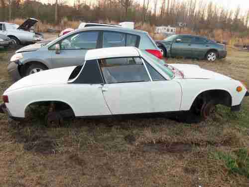 1974 Porsche 914. Complete 2 door car. Coupe. Has motor and transmission, not sure if it runs or not. Body is solid. Good parts car. NO TITLE. Removal roof. Some interior parts.