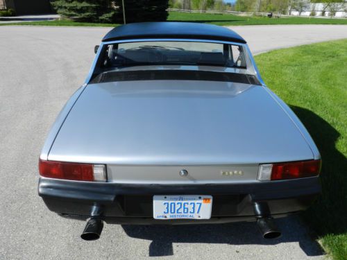 This is a '72 914 that I have built over the last four years to be a fun, daily driver/sleeper that will not attract too much attention, but will pull like a freight train when prodded. I have owned 914's back to 1983, seven total, and this is by far the most solid one. A life-long Calif. car, till shipped to Mich. for the conversion, it never had undercoat, so the original paint is visible on the pan. There is no rust in the floor, or rocker/long areas. Battery tray was removed, and located in the front trunk for weight balancing, and a simplified engine bay. The car was block sanded, and painted in base/clear Silver, to match original. Door shell interiors, and under floor pan were given coats of Waxoyl, a British sealer treatment to keep her rust free. The goal was to have a car I could hop in, have start instantly, and drive in whatever weather happened without worrying about her. Fuel tank was perfect, was cleaned, and sealed inside with an epoxy tank treatment. Rubber fuel lines are now braided stainless -6 lines. Windshield and rear glass were pulled for body work, and replaced by a pro, so no leaks. All lights and signals work, as do the emergency brake. Most of the cars rubber has been replaced with new, from 914 Rubber. All brake calipers are new in last four years, with new Mintax pads. New 19mm master cylinder upgrade, new 930 Turbo tie rods installed. Koni adj. shocks on rear, with 200 lb. springs, and Koni front inserts. Interior has new Perlon carpet set installed, and new dask cap. Seats are near perfect, as is the full interior. New, hi-output fuel pump, and Corvette filter, tank return installed. New brake fluid installed this May, and rear pad vent distance set. Three extra gauges installed in place of radio: oil pre., coolant temp, and voltmeter. The car has the Renegade aluminum radiator/fan set up, and runs under 180 deg. at all times. Aluminum tubing carries the coolant under the car to the rad. Pedal's have been rebuilt with bronze bushings, new clutch cable, Optima battery with billet battery hold down in front trunk. Mileage is correct, and odometer has been converted for the tire size, and gearing. Transaxle is a Renegade 4 speed conversion, with flipped tall gears in 3rd, 4th, and 5th, and was sent to Carlos at Bluesky for a full rebuild. Car has polished Fuch 4 bolt wheels, and a 5th with original spare mounted, (which has a lot of rash from curbing, but is functional). Tires are older Pirelli, but with full tread. Front and rear bumpers are fiberglass.