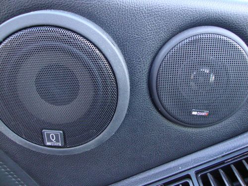 The soundsystem includes a Alpine CDA9885 radio/CD player, and it is set up with an IPOD connecter hidden in the center console. All 10 of the factory speakers have been upgraded to MB Quart (German) speakers, along with a MB Quart Subwoofer. It comes with a Soundstream Van Gogh (VGA800.5) Amp that powers the system. This is an 800 Watt 5 Channel Amplifier, that has a very low Total Harmonic Distortion Level of .02%. This is the cleanest and the most crisp sound I have ever heard from a car stereo. The stereo has a complete system of MB Quart Crossovers set up to get the right frequencies to the right speakers. The MB Quart Subwoofer, MB Quart Crossovers, and the Soundstream Amp are all housed in the rear hatchback area in a professional cabinet that matches the black leather in the vehicle. This professional cabinet includes a discrete switch for black light illumination if desired. All of this was professional installed. No corners were cut, because I wanted it perfect. The car has also been equipped with a discrete (hidden) cable for connection of your radar detector to the visor.
