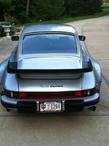 Rare silver exterior/red interior 930. 1st year in USA was 1976. Serial # 34/500. 3.3L K26 Stock Turbo w/ Intercooler. Original 3.0L crankcase available. Original tail available. Paint average. 3.2 Carrera cams and bottom end. Heads/valves ported, polished and flow benched. Dual DHL Headers/Exhaust. Stock Transmission reconditioned. ClutchMasters Stage III Clutch. Boxter brakes (Brembo) update. 22/30mm Torsion/Sway bars updated suspension. Updated A/C and Alpine stereo/amp/4 speakers/2 sub. Almost 400HP (390), 420 ft-# torque. Modified at 58,000 miles by (Bob) Farmers Automotive in Indianapolis, IN. Car has never been adjusted from stock boost. Currently appx. 93,000 miles.