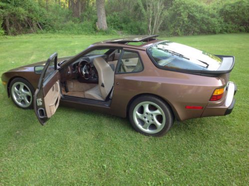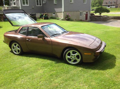 I'm the 3rd owner of this 944. Had approximately 42k miles when purchased. Had it repainted about 8 yrs. ago, changing color to Brown. I replaced all door seals, rear hatch and sun roof gaskets. The ac is ice cold, heat works excellent. All electrical functions work as they should with exception to radio antenna works part way. Radio is an Alpine cassette ,have working original. Comes with tool kit, original spare and aftermarket air pump. Slight dash cracks but have matching hard shell cover not installed. The rest of the interior is very good no rips anywhere( non smoker) Installed beautiful turbo twist rims and Kuhmo ;tires 205/50R17 front and 255/40R17 rear. Maybe 2k on tires.There's a rear compartment pull out cover and I have a black bag to hold the sunroof when out. This spring I replaced the clutch slave cylinder and master cylinder . Last year the front control arms and bushings. Interior lights are led and I have all work shop manuals from Porsche. Engine is stock never touched except plugs,rotor ,etc. Car drives , shifts and handles the road excellent. Any questions email I'll be glad to answer.