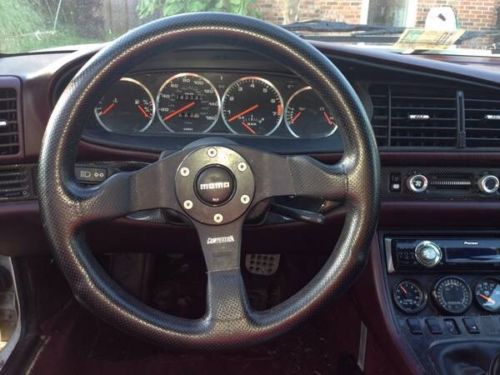 Recently done with some receipts New! brakes all around (pads x4 +fresh rear rotors) front struts koni tie rods Tires Rear rims Lindsey racing Quad-M MAF tuned at abacus racing. Speed and reference sensor Crank position switch Timing (kevlar) and balance shaft belts Water pump Fuel filter Oil pan + gasket. Fresh oil change 2months ago Ignition rotor +distributor dust cap Adjustable fuel pressure regulator Flasher relay Battery Aftermarket parts installed by previous owner Turbo (hybrid with garrett cold side and triplek#? coldside) Adjustable boost control Dual port waste-gate 4-inch racing exhaust w/ magnaflow muffler (wonderful low tone) Boost/vacuum gauge Wideband o2 gauge Oil temp gauge Nice head-unit and 8"sub in spare tire well (inflatable spare included) amazing sound! Momo steering wheel Momo e-brake Carbon fiber interior(dressup) Aluminum gauge and knob rings Strong clutch. Previous owner rebuilt engine 40k before selling have added +- 15k since then. Have motorcycle and 4runner so it has not been sole daily driver. Minor issues small leak from cam tower gasket causes smoke. Sunroof not fully functioning(gears stripped) can remove and place manually still. easy to fix. No a/c, but good heat! (Common) Small crack in dash. has not grown much in 2 years. Repair to leather seat driver side, done by me not very noticeable. Not actual miles Odometer broken soon after coming into my posession very common for 944s Have replacement hood crest Exterior isnt perfect but is clean overall, Couple of bumps bruises etc. nothing big or very noticeable. |
