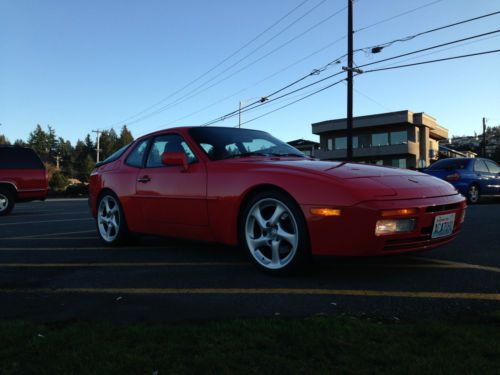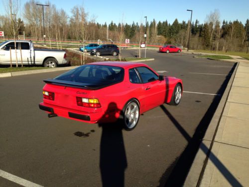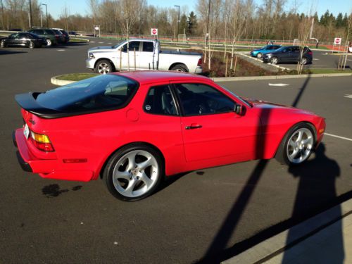 PORSCHE 944T CLEAN BODY, PAINT AND EXTERIOR. STRONG CAR WITH PROFESSIONALLY BUILT TURBO “S” 2.8L STROKER MOTOR, K26/8 CUP TURBO, STAGE TWO DME AND KLR CHIPS, KEP ALUMINUM PRESSURE PLATE WITH CUP DISK AND BEARING, 18X8 & 18X10 TURBO TWIST WHEELS, PERFECT LEATHER 993T FULL POWER SEATS, 968 REAR DECK SPOILER, RUNS GREAT WITH LOTS OF POWER. LESS THAT 4K ON MOTOR BUILT WITH RACEWARE STUDS, HIGH VOLUME PUMP AND PRESSURE REGULATOR, STEEL BRAIDED FUEL LINES. CAR HAS BEEN DRIVEN VERY LITTLE IN LAST THREE YEARS. PREVIOUS OWNER HAD 6 OF THESE AND THIS ONE WAS SITTING FOR 8 YEARS (1995-2003). I AM SURE I AM MISSING A FEW GOODIES. THERE HAS BEEN SOME COSMETIC REPAIRS BY PREVIOUS OWNER AND A FEW TO THE DASH. CAR RUNS COLD A/C, FULL 3” TURBO BACK STAINLESS STEEL EXHAUST AND SPORT MUFFLER, SOUNDS GREAT. LOW RESERVE. TURBO HAS INTERIOR ELECTRONIC ADJUSTMENT TO 21 PSI. CAR IS CURRENTLY SET UP AT 15PSI BUT CAN BE TUNED TO 350 HP & 400 TORQUE. THIS IS A VERY FAST 944T, I HAVE OUT RUN A FEW ZO6’S AND SHELBY GT500'S WITH THIS CAR, THEY ARE ALL VERY SURPISED WHEN THEY PULL ALONG SIDE!!