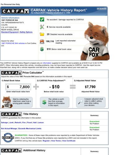 1987 Porsche 944 With Clean Carfax Report! on 2040-cars