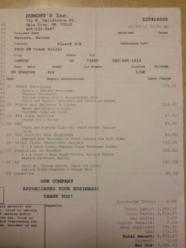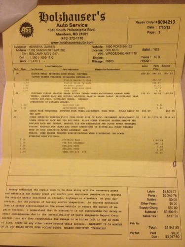This is a very nice 1990 Porsche 944 Cabriolet S2 convertible. It has 83,000 miles. This is my fourth 944 series Porsche. I bought the car about a year ago but due to job and moving have not been able to enjoy it. So, have decided to sell. On a scale of 1-10, I would rate it 8.5. The interior is in perfect condition. Their are no signs of aging or wear at all. The dash has no cracks and has a new Pioneer XM Satellite Radio System. Listed two repairs invoices that show work performed in 2012. Has new tires and just installed a new NAPA battery. The exterior looks great with no door dings and is very shiny. The car has been repainted at some point but is very nice. The car runs and drives great. I think the top is new also. If your looking for a 944 that's nice and needs nothing, then look no further. Car is currently financed thru my credit union so cashier's check would have to be sent before the car can be picked up or shipped.