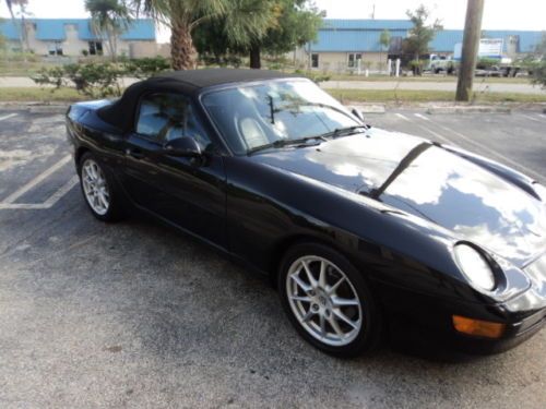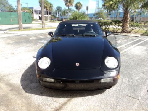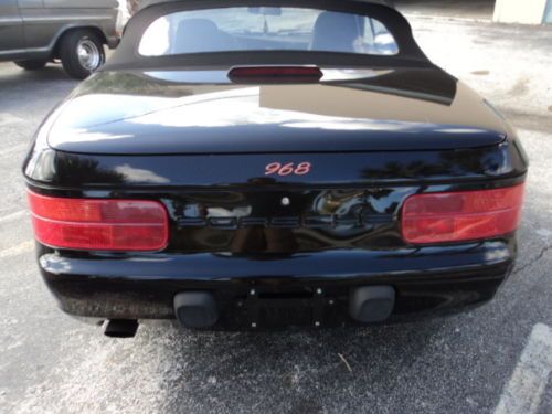 THIS IS A 1995 PORSCHE 968 CABRIOLET TRIPLE BLACK AUTOMATIC. THE TOP IS IN PERFECT CONDITION WITH NO LEAKS AND THE BACK WINDOW IS CLEAR NO FADING. THE CAR HAS 140000 MILES ON IT AND IT DOES HAVE SOME SMALL SCRATCHES AND DENTS SO PLEASE IF YOU HAVE ANY QUESTIONS ABOUT THE CONDITION PLEASE ASK. THE CAR RUNS AND DRIVES STRONG. IT DOES LEAK A LITTLE BIT OF OIL.