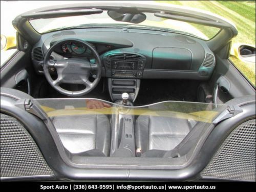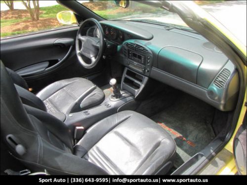 Our 1997 Porsche Boxster is as pretty as a spring flower. Equipped with a five speed transmission, single in-dash CD, and 17" alloys, this car will make any warm summer day just a little better! Test drive it today. We have priced it to sell! Our Showroom offers one of the largest collections of new and pre-owned exotic cars. We are your exotic and super car headquarters. Our location just north of Greensboro, North Carolina allows us access to the greatest roads around to test drive. Our motto is From showroom to country road in 30 seconds! Call today!!
