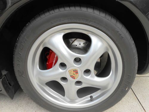 An extra set of tires and wheels are included with this vehicle. The extra set of tires are mounted on Porsche wheels. The tires on the vehicle now are also mounted on Porsche wheels (two different styles of wheels). Two sets of keys, both with remote entry, are also included, as is the California Car Cover that's always covered the vehicle. This vehicle has always been stored inside of a garage. The rear spoiler comes up at 75 MPH and goes down at 55 MPH.