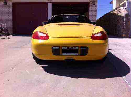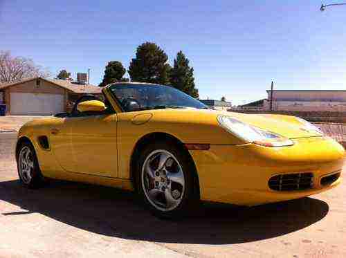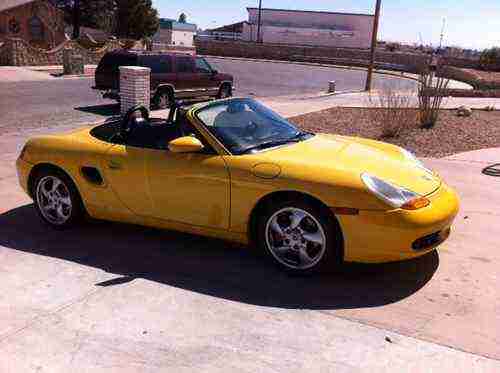 FOR SALE IS A 2000 PORSCHE BOXSTER S WITH LOW ORIGINAL MILES. THIS CAR HAS A YELLOW EXTERIOR AND BLACK LEATHER INTERIOR. THE CAR HAS NOT BEEN INVOLVED IN ANY ACCIDENTS NOR HAS IT BEEN RE-PAINTED. THE PORSCHE ALSO HAS A BRAND NEW CLUTCH AND BRAND NEW TIRES. GARAGE KEPT AND PREMIIUM FUEL HAS ALWAYS BEEN USED FOR THIS VEHICLE. THIS CAR COMES WITH THE ORIGINAL OWNERS MANUAL AND SPARE TIRE AS WELL AS TOOL KIT.
