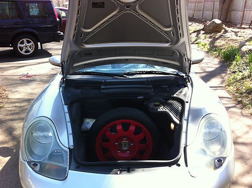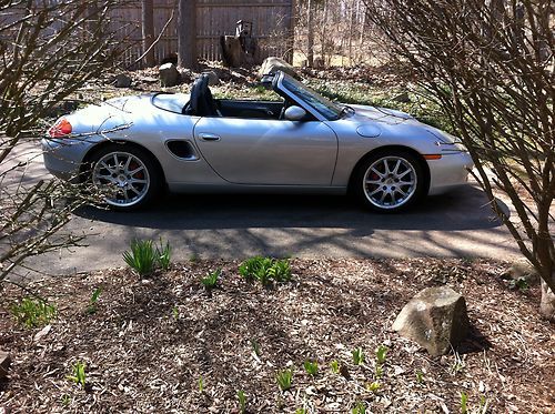2000 porsche boxster S 81000 miles. rare option car. sport package. 18" sport design wheels. tech equip. exhaust all ordered original. 60k service done by dealer. new tires, brakes, O2 sensors, fresh oil, custom car cover, stored winters. artic metallic silver with graphite grey int. with matching soft top. litronic light package(self adj. xenons) wet olyoke seat covers,hi-fi stereo option. 6-speed manual. best looking boxster anywhere " ALL OPTIONS ORDERED ORIGINAL NO AFTERMARKET"(except seat and car cover) car drives flawlessly ready for summer. going through divorce must sell!!was my wifes summer car.kbb private party$18,484 trade in value$15,669. my loss is your gain. reserve priced to sell or make reasonable offer I'll end auction early. have title in hand highly motivated seller.