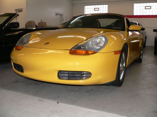 THIS IS A 2001 PORSCHE BOXSTER. 3 OWNERS AND A CLEAN CAR FAX HISTORY.VERY RARE YELLOW EXTERIOR! EXCELLENT CONDITION INSIDE AND OUT. RUNS GREAT. QUESTIONS CALL JOHN 330-983-7897. WE RESERVE THE RIGHT TO PULL THE CAR FROM E-BAY IF SOMEONE COMES ON OUR PROPERTY AND BUYS THE CAR IN PERSON. WE HAVE A $150 DOCUMENT FEE, FOR FILING AND PAPERWORK, PLUS TAX AND TITLE FEES FOR WHATEVER STATE YOU ARE FROM.