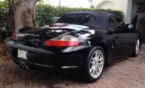 For sale is a 2003 Porsche Boxster S with extremely low miles: 42,484. 3.2L flat 6-cylinder engine with 258 horsepower, rear wheel drive. Runs perfectly. Original owner (one owner). The car is black with a beautiful black leather interior and black power convertible top with glass window. Garage kept. Non-smoker. Windows have privacy window tint. 6 speed manual transmission. Ice cold A/C. Bose sound system. Heated seats. The paint and body are both in great condition and the interior is beautiful. This is a stunning car, the pictures speak for themselves. Fully loaded with all the goodies. Also included is a Car Cover and Sunshield specifically designed for the Boxster. Vehicle recently had its oil changed and fluids topped off. All scheduled maintenance. This is a highly sought after car in impeccable condition, and it will not last long. Normal wear & tear only. Title in-hand. Can be seen easily. Vehicle is located in Coconut Grove, FL. Will ship at buyers expense. Buyer is responsible to setup shipping arrangements. Serious inquiries only. Email me through eBay with any questions or concerns. |