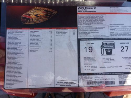Absolute Beautiful 2006 Porsche Boxster S, Bose, Power Seat Package, Internal Battery Maintainer, H&R sport Springs, New 19" Bridgestone Potenza S-04 Pole Position (Summer),Cayman side vents, Color (Guards Red) match center console, Clear Guard front protection, Escort 9500 CI.