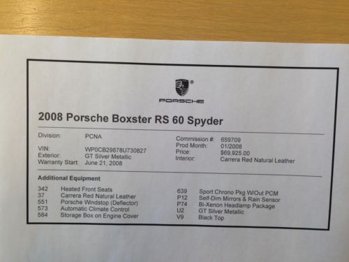 2008 Porsche Boxster Rs 60 Spyder Manual Low Miles Limited Edition 137 Of 1960 on 2040-cars