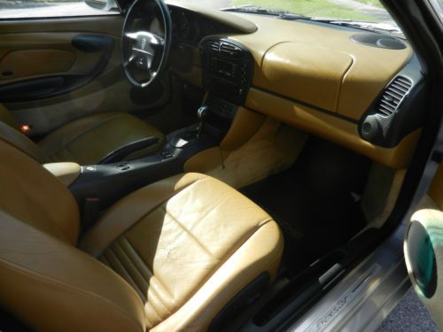 * Automatic transmission * Alloy wheels * Power seats * Power windows * Power top * Leather interior * Just serviced This is an absolutely gorgeous 1999 Porsche Boxster Roadster that runs and looks great! This beautiful Platinum Silver Porsche comes fully equipped with power windows, power locks, power seats, cold a/c, alloy wheels, automatic transmission, cruise control, amfm stereo with cd player and all the head turning looks, power and performance you can only get from Porsche! The exterior of this car is all original and in beautiful condition. The interior is also in excellent shape with a perfect dash, excellent door panels and seating surfaces and an overall "clean" appearance. This car runs and drives great! All the mechanical and electrical components are in fine working order and the tires and brakes are excellent. Don't miss out on this beautiful Porsche at a great price! Call me at 305-992-3575 if you have any questions. Thanks! |