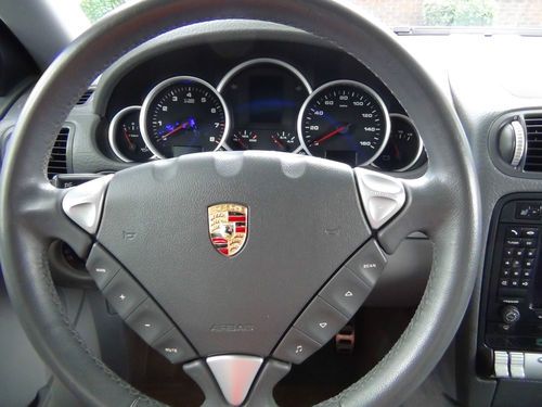 Options: Moonroof, Heated embossed leather, 18" Cayenne Turbo Wheels, Bi-Xenon Headlights w/Washers, Porsche Communication Mgt. II, Drivers Seat Memory, Light Comfort Package w/Memory, Compass Display, Power Seats, Wheel Hub Covers Colored Crest, Variable Assist Power Steering, Porsche Crest in Headrest, Heated Steering Wheel, 6 Disc CD Changer, Bose Digital sound with 350 watts 14 Speakers, Heated, Retractable exterior mirrors, Central locking w/remote, Dual Auto Climate Control, Homelink, Stainless Door Entry guards, pedal pads, Split folding rear seats 60/40, 4-Wheel Drive, Leather Seats