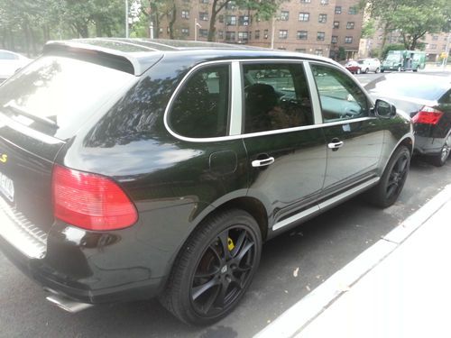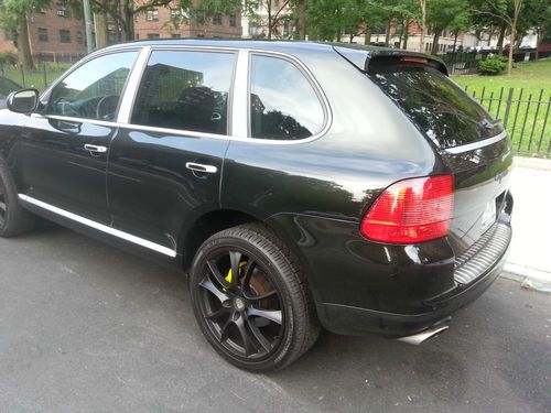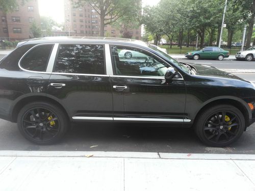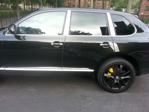 2006 Porsche Cayenne S 4dr SUV 4WD (4.5L 8cyl) with Black Exterior, Black Interior. Loaded with 4.5L V8 MPI Engine, Automatic Transmission,navigation, Leather Seats, Heated Front Seats and rear seats,heated steering wheel, Power Front Seats w/Memory, Power Glass panoramic Moonroof, Leather Steering Wheel Trim, Cruise Control, Audio Steering Wheel Controls, CD Audio bose System, Automatic Climate Control, Power Windows, Power Door Locks, Power Exterior Mirrors, Xenon HID Lights,yellow brembo porsche calipers,22" gts rims in black which are currently on the car 19 borbet xa Wheels with pirelli zero tires which im throwing in, rear heated seats, parking sensors, tow package and off road package and much more.Can help with financing if needed!