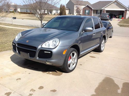 I am putting this car on EBay for a friend of mine. This is a very nice 2006 Porsche Cayenne Turbo. Vehicle has 4 new tires (less then 3,000 miles) New rear brakes with wear sensors. Just had the coolant pipe replaced that runs under the intake with the updated non-plastic coolant pipe. (If you are looking at any of these check to make sure this has been replaced, the part alone costs $1,200, 2 gallons of Porsche coolant @ $80.00ea and then labor. Total bill was $2,300) The factory uses a plastic coolant pipe that cracks without warning. Only mods that have been done are dual cold air intakes and a after stainless muffler. Good sound, not loud at all. Can email a sound clip if some wants to hear it.